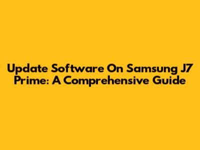Update Software On Samsung J7 Prime: A Comprehensive Guide