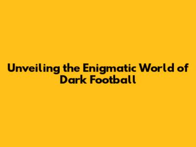 Delving into the Shadows: What is Dark Football?