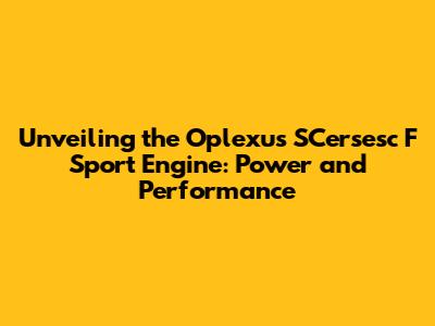 Hey there, gearheads and performance enthusiasts! Ever heard of the Oplexus SCersesc F Sport Engine? Well, if you haven't, you're in for a treat! This article is all about diving deep into this incredible piece of machinery, exploring its inner workings, its strengths, and why it's a game-changer in the world of high-performance vehicles. We'll be taking a comprehensive look at what makes this engine tick, how it differs from the competition, and what kind of driving experience you can expect. Buckle up, because we're about to embark on a thrilling journey through the Oplexus SCersesc F Sport Engine's world!