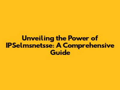What Exactly is IPSelmsnetsse, Anyway?