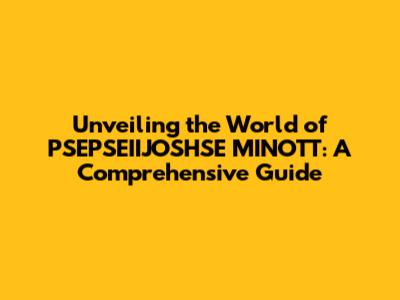 Demystifying PSEPSEIIJOSHSE MINOTT: What Exactly Is It?