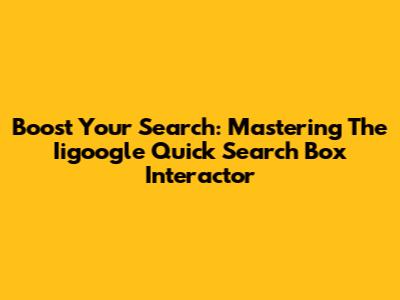 Boost Your Search: Mastering The Iigoogle Quick Search Box Interactor